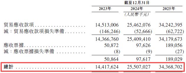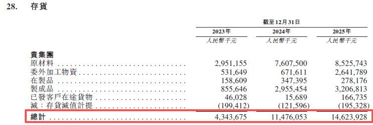 此外,华勤技术的应收账款及存货规模在报告期内攀升,占用了公司的营运资金。报告期内,公司的贸易应收款项及应收票据总额为144.18亿元、255.07亿元和343.69亿元。同期,公司的存货也从2023年末的43.44亿元,增至2024年末的114.76亿元,并在2025年末进一步攀升至146.24亿元。
