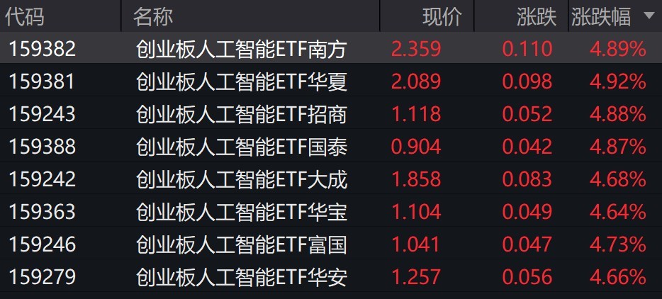 受盘面影响,创业板人工智能相关ETF涨近5%。