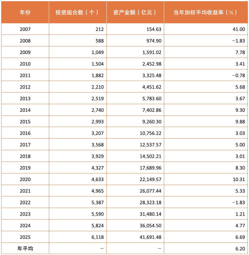 在固定收益类资产方面,混合型产品在2025年实现了6.47%的收益,而在其他产品上,也大部分实现了正收益,仅有信托产品在2025年的收益为-0.49%。