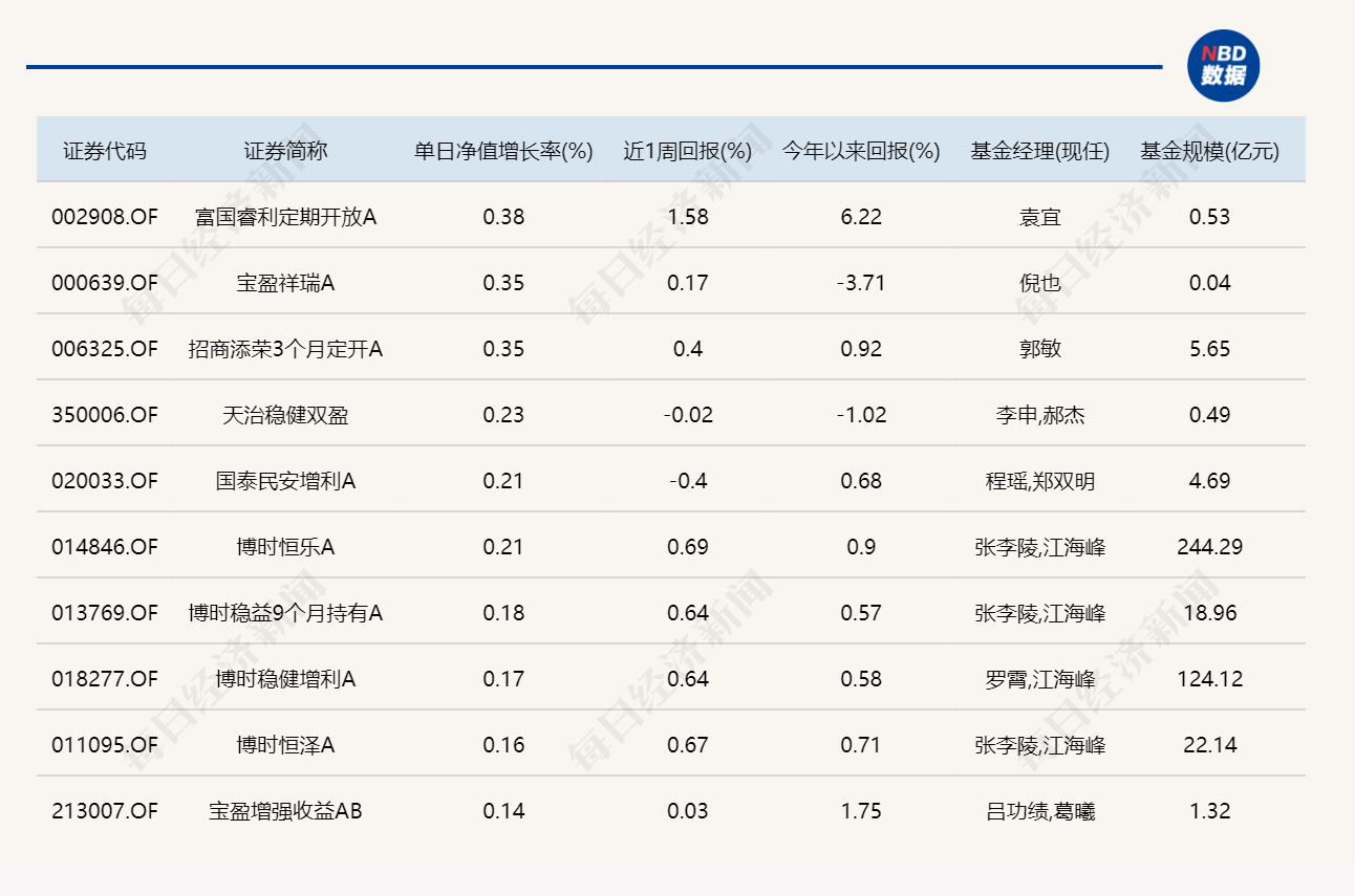 3.单日债基涨跌幅榜