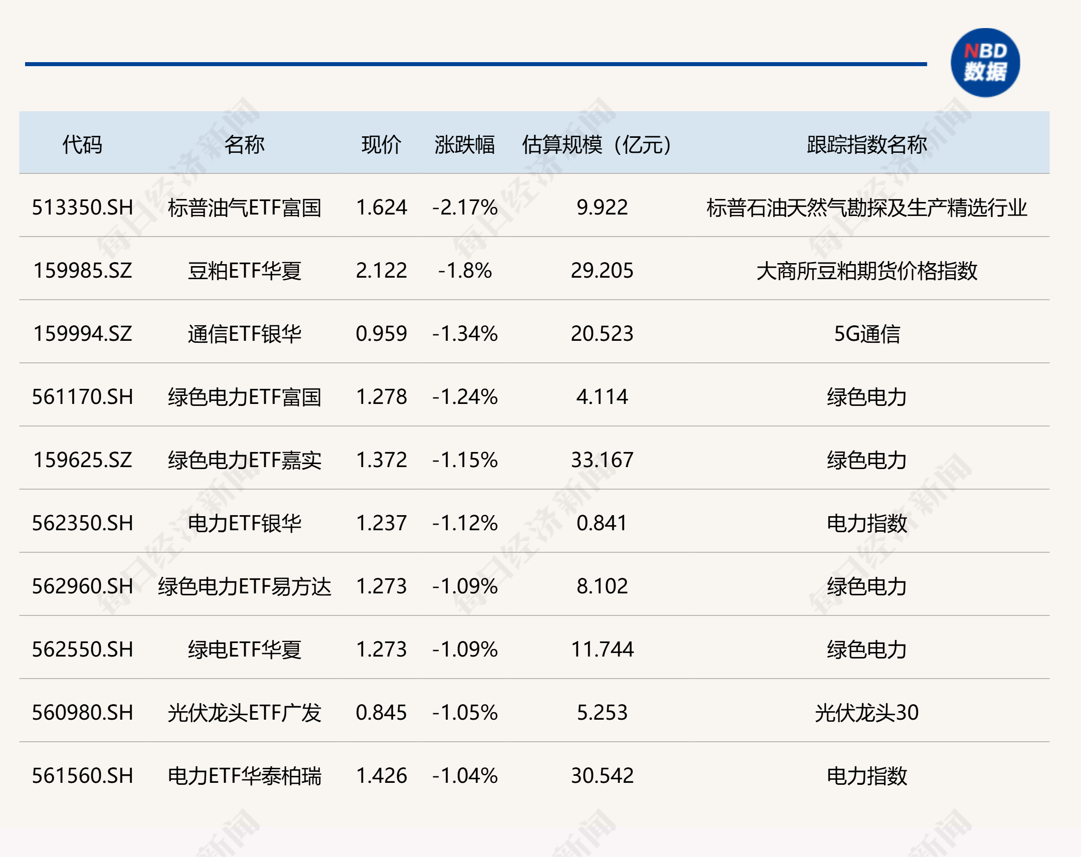 下跌方面,标普油气ETF富国跌超2%,绿电相关ETF跌超1%。