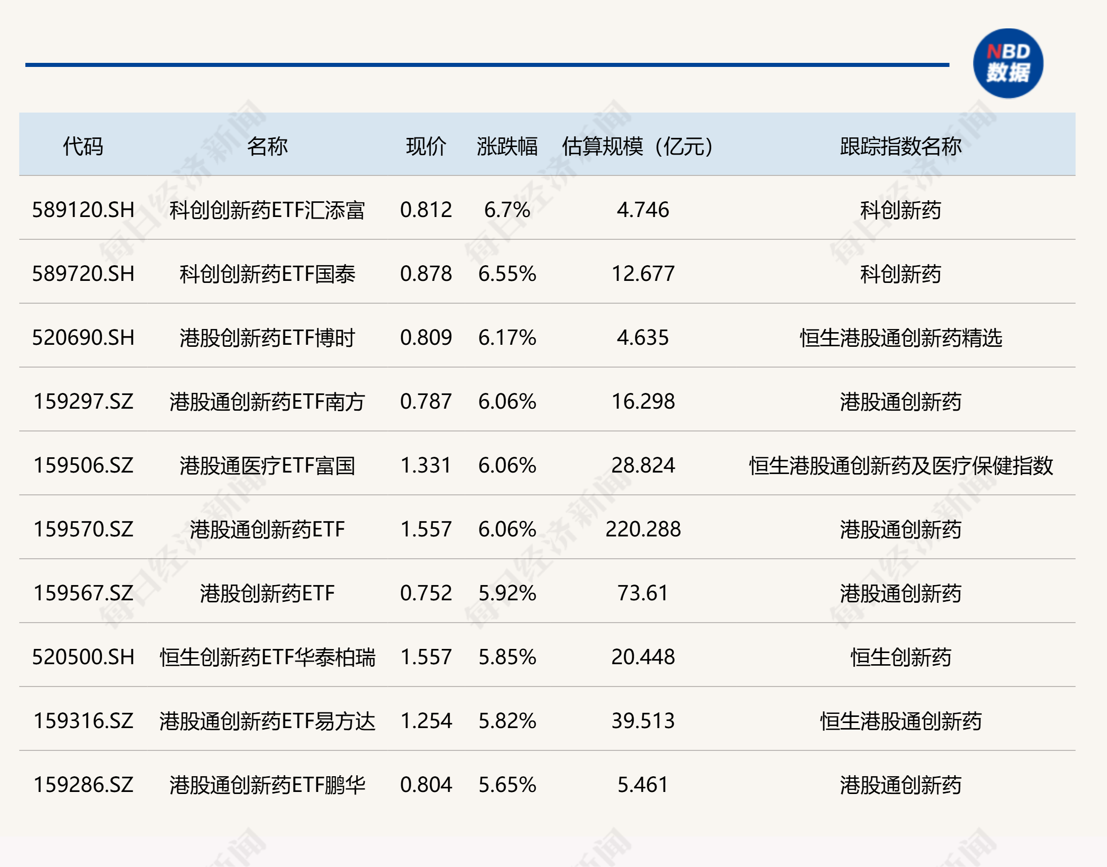 ETF涨跌幅方面,多只创新药相关ETF涨超6%。
