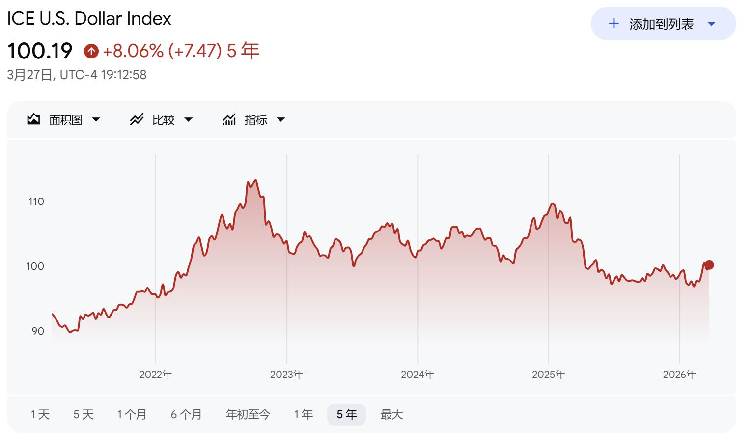 美元指数近5年的走势