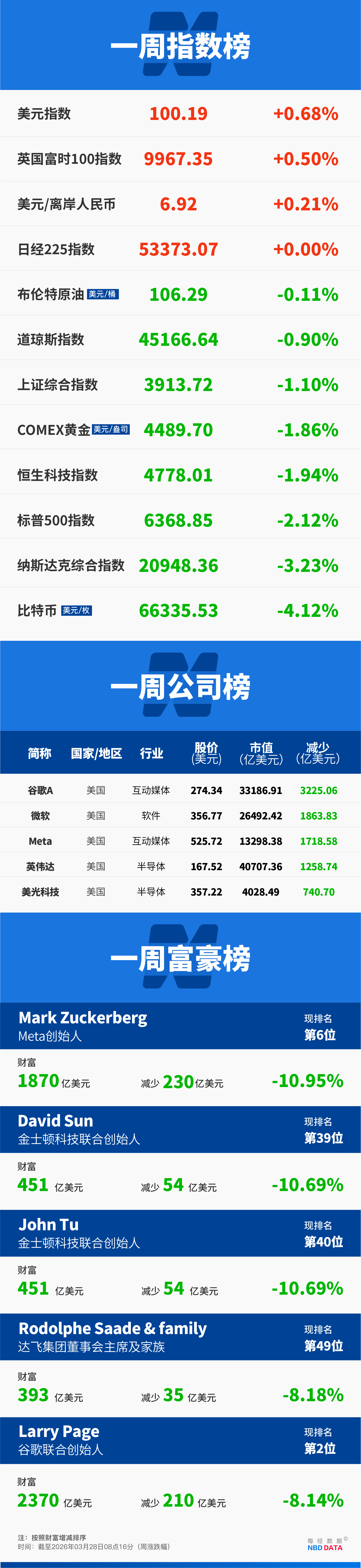 受社交媒体成瘾案件诉讼影响,Meta与谷歌本周表现不佳。Meta本周累跌11.44%,谷歌累跌8.86%。