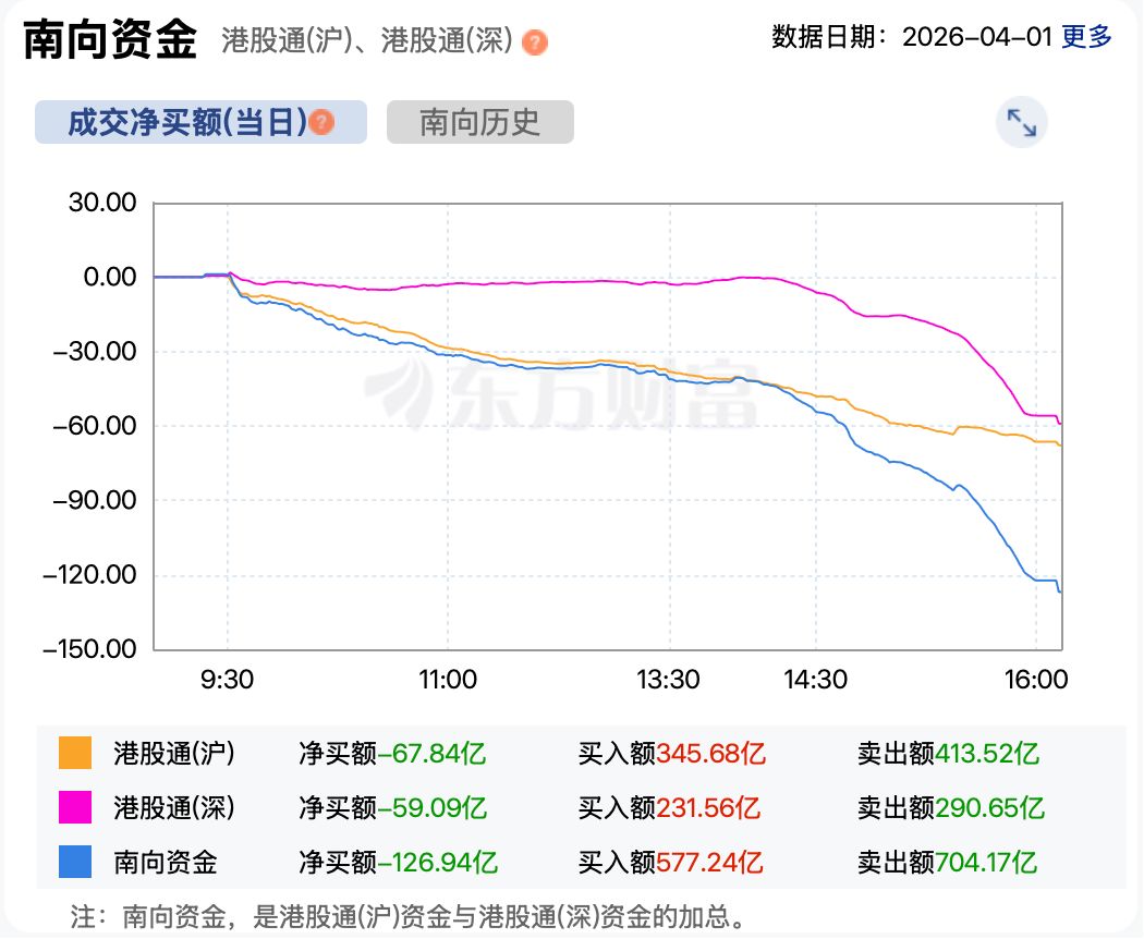资金方面,尽管市场反弹,但南向资金今日出现较大规模净卖出。截至收盘,南向资金净卖出港股超126亿港元。