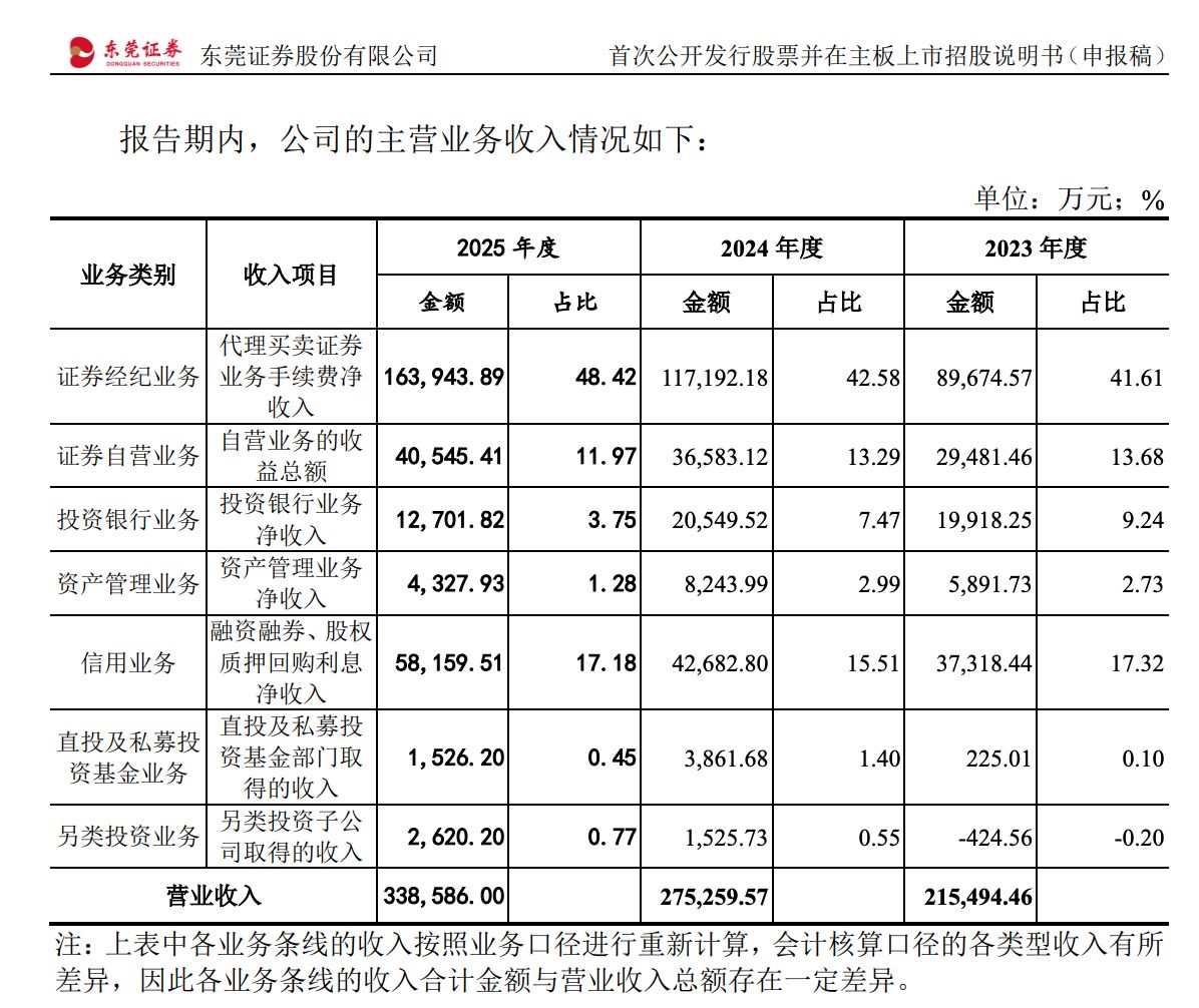 3月31日,东莞证券披露了更新后的招股说明书。披露数据显示,2025年,东莞证券实现营业收入33.86亿元、归母净利润12.45亿元,分别同比增长23.01%、34.82%。另外,东莞证券预计,2026年一季度,公司实现归母净利润为3.31亿元至3.66亿元,同比增长63.06%至80.23%。