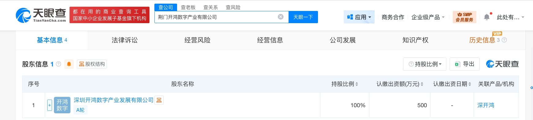 每经AI快讯,天眼查工商信息显示,近日,荆门开鸿数字产业有限公司成立,法定代表人为王波,注册资本500万元人民币,经营范围包括信息系统集成服务、软件开发、物联网技术研发、人工智能行业应用系统集成服务等。股东信息显示,该公司由深圳开鸿数字产业发展有限公司全资持股。