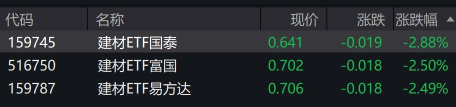 建材概念股走弱,旗滨集团、四川双马跌超3%,东方雨虹、三棵树跌超2%。