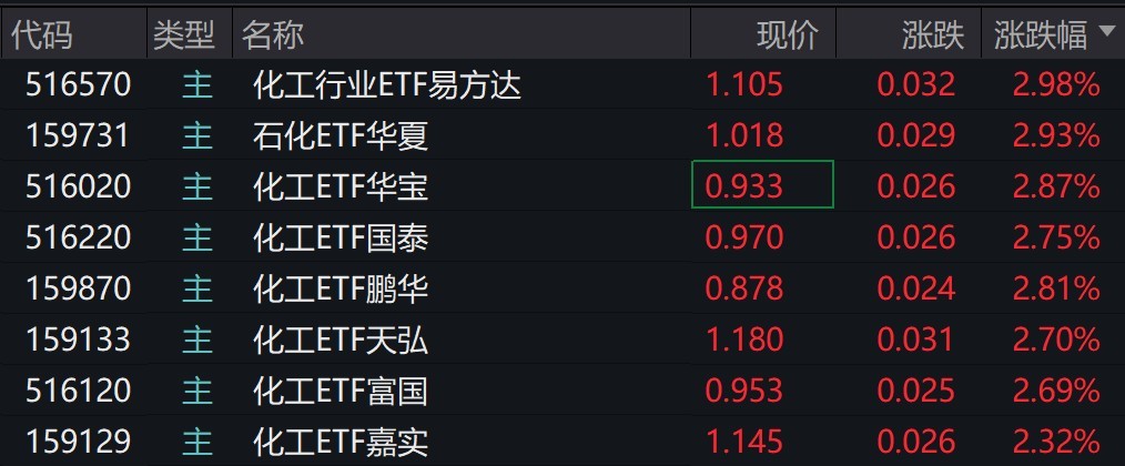 受盘面影响,化工相关ETF涨超2%。