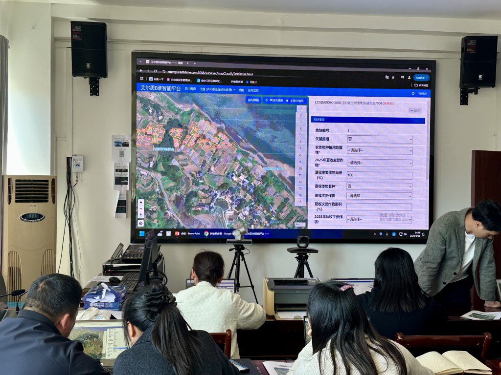 泸州市江阳区方山镇白塔村一间办公室里,几台电脑一字排开。屏幕上是一幅幅被放大的卫星影像:田块边界被AI自动勾勒出来,顺着田埂、沟渠弯折延伸。普查员盯着屏幕,放大、核对、标注——AI勾画是否压准了边界?地块属性是什么?鼠标轻点,一一核准。