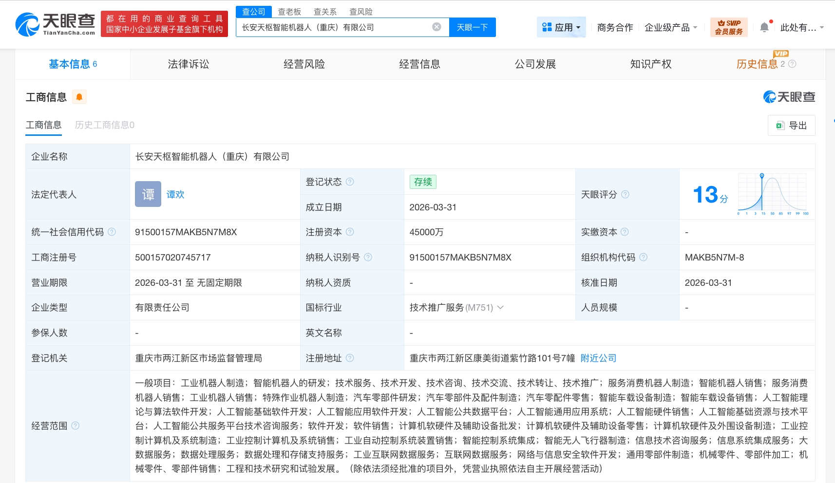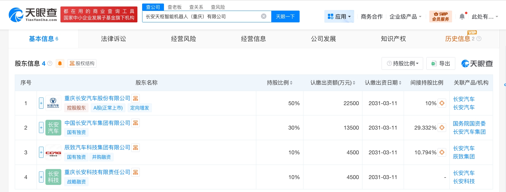 每经AI快讯,天眼查工商信息显示,近日,长安天枢智能机器人(重庆)有限公司成立,法定代表人为谭欢,注册资本4.5亿元人民币,经营范围包括工业机器人制造、智能机器人的研发、人工智能软件开发等。股东信息显示,该公司由长安汽车(000625)、中国长安汽车集团有限公司、辰致汽车科技集团有限公司、重庆长安科技有限责任公司共同持股。据媒体报道,长安汽车表示,当前,长安汽车以人形机器人为焦点,可实现环境感知与行走避障,模仿真人动作,并搭载长安自研的天枢大模型,按照长安汽车的规划,预计2028年量产下线人形汽车机器人,2030年后逐步向家庭服务机器人拓展。
