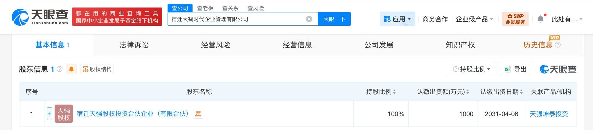 每经AI快讯,天眼查App显示,4月9日,宿迁天智时代企业管理有限公司成立,法定代表人为李瑞玉,注册资本1000万元人民币,经营范围为企业管理、企业管理咨询、信息咨询服务、信息技术咨询服务、计算机软硬件及辅助设备批发、计算机软硬件及辅助设备零售等。股东信息显示,该公司由宿迁天强股权投资合伙企业(有限合伙)全资持股,后者由刘强东、章泽天及二人名下北京天强坤泰投资管理有限公司共同出资。
