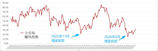 情绪宝数据显示,今天开年时,行情就在情绪高位,然后一路向下,在近期刚触碰情绪底部,这意味着今年第一轮情绪周期正在开启。
