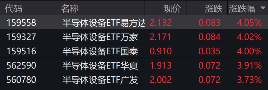受盘面影响,半导体设备相关ETF涨约4%。