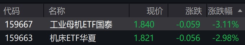 受盘面影响,工业母机、机床相关ETF跌约3%。