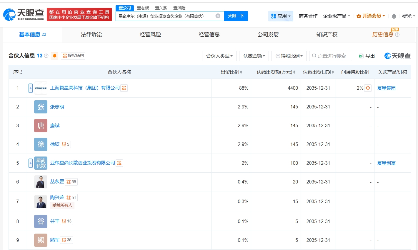 每经AI快讯,天眼查App显示,近日,星奇摩尔(南通)创业投资合伙企业(有限合伙)成立,执行事务合伙人为亚东星尚长歌创业投资有限公司,出资额5000万元,经营范围为创业投资。合伙人信息显示,该合伙企业由上海复星高科技(集团)有限公司、亚东星尚长歌创业投资有限公司、张志明等共同出资。