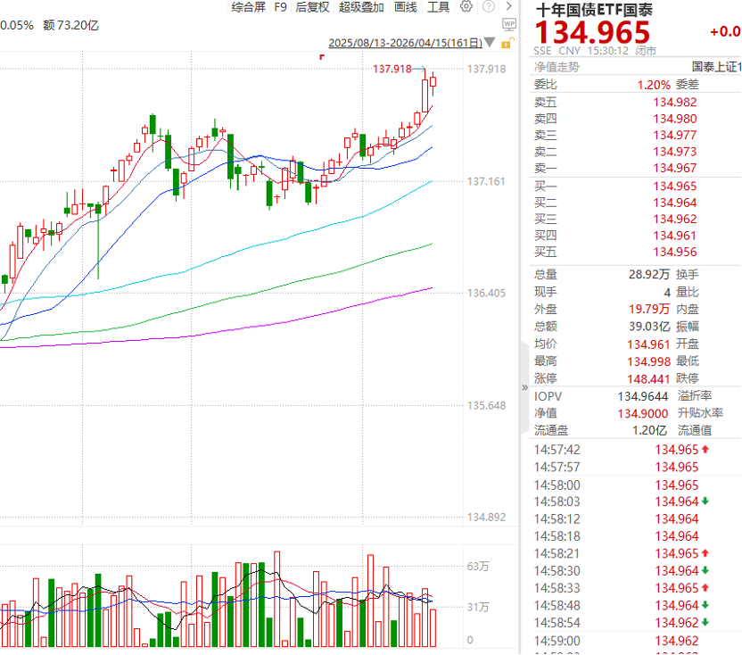 4月15日,近日长债表现较为优异。10年国债活跃券利率突破1.80;30年国债活跃券利率下行至2.28左右。相应地,十年国债ETF(511260)近5日收益率达到0.31%。从消息层面看,我国30年国债供给收缩传闻带动期限利差压缩,引发较为显著的上涨。