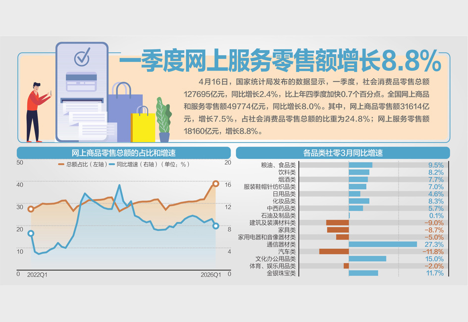4月16日,国务院新闻办公室举行新闻发布会,介绍2026年一季度国民经济运行情况。