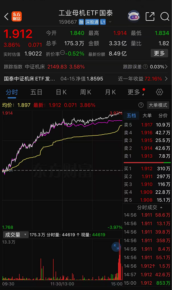 工业母机具备多重动能,有兴趣的投资者可重点关注工业母机ETF(159667)。