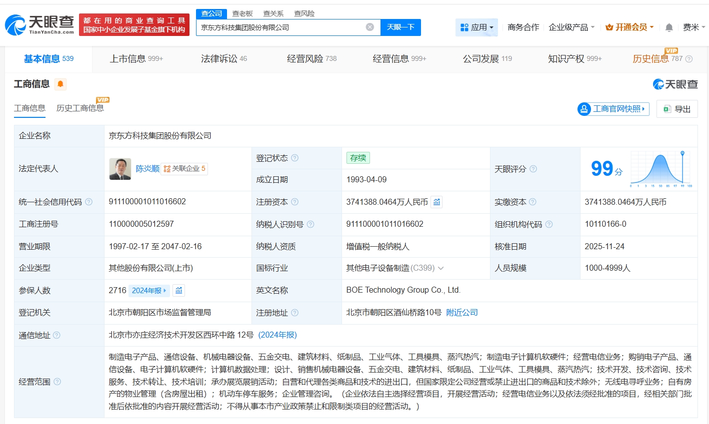 每经AI快讯,天眼查知识产权信息显示,近日,京东方科技集团股份有限公司登记“AI工厂”作品著作权,作品类别为美术。该公司成立于1993年4月,法定代表人为陈炎顺,注册资本约374.1亿元人民币,经营范围包括制造电子计算机软硬件、经营电信业务、计算机数据处理等,由北京国有资本运营管理有限公司、香港中央结算有限公司、北京京东方投资发展有限公司等共同持股。
