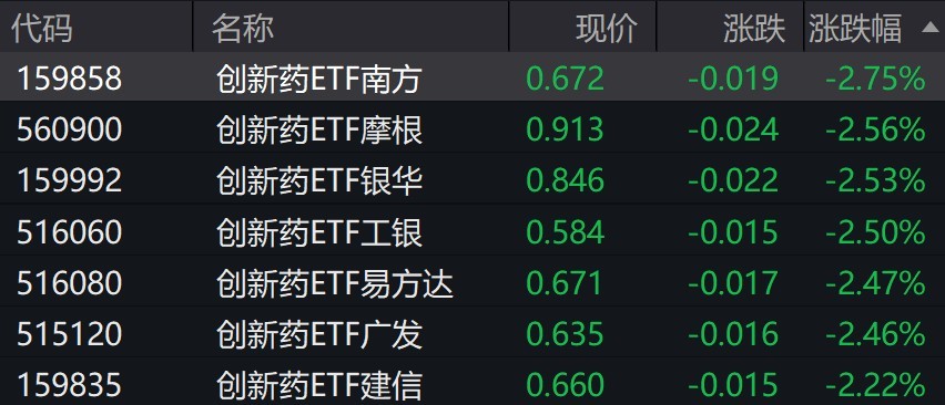 受盘面影响,创新药相关ETF跌超2%。