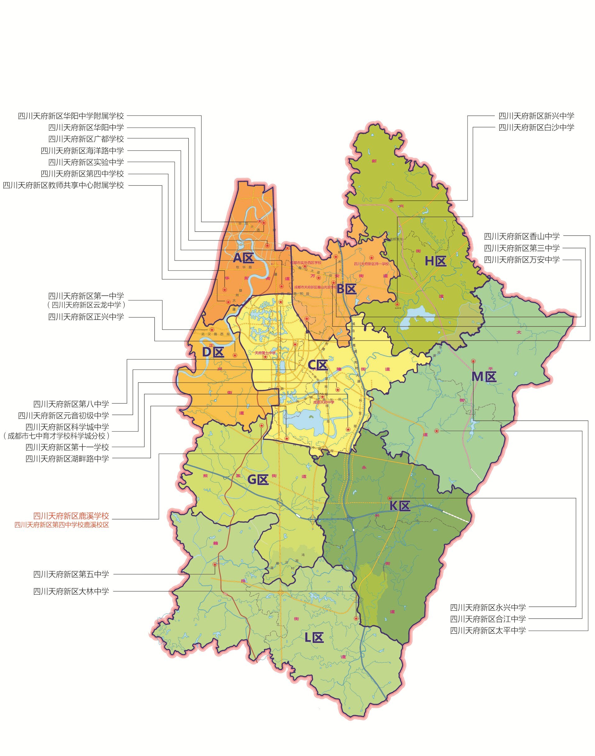 四川天府新区直管区(以下简称“新区”)2026年初中学区划分范围公告如下。