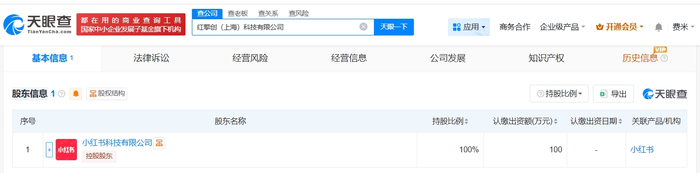 每经AI快讯,天眼查App显示,4月17日,红擎创(上海)科技有限公司成立,法定代表人为吴迪男,注册资本100万元人民币,经营范围包括信息咨询服务、企业管理咨询、广告制作等,由小红书科技有限公司全资持股。