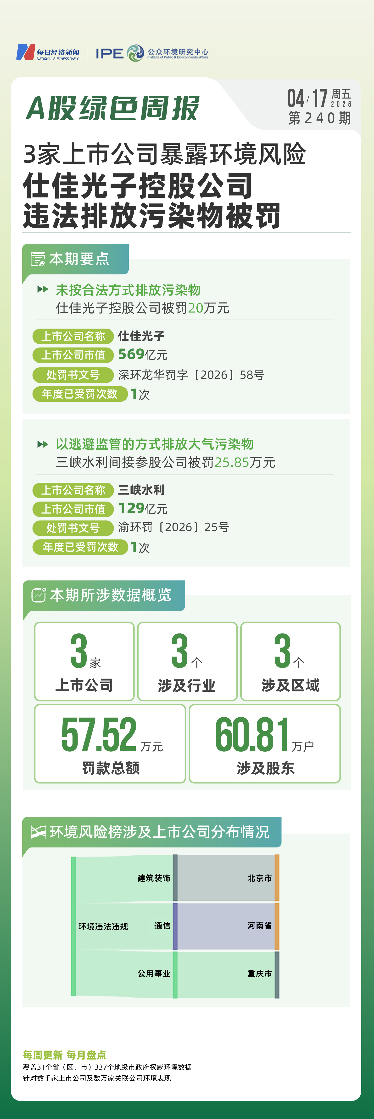 2026年4月第三周,哪些上市公司的环境保护与信披责任亮起了红灯?且看A股绿色周报第240期。