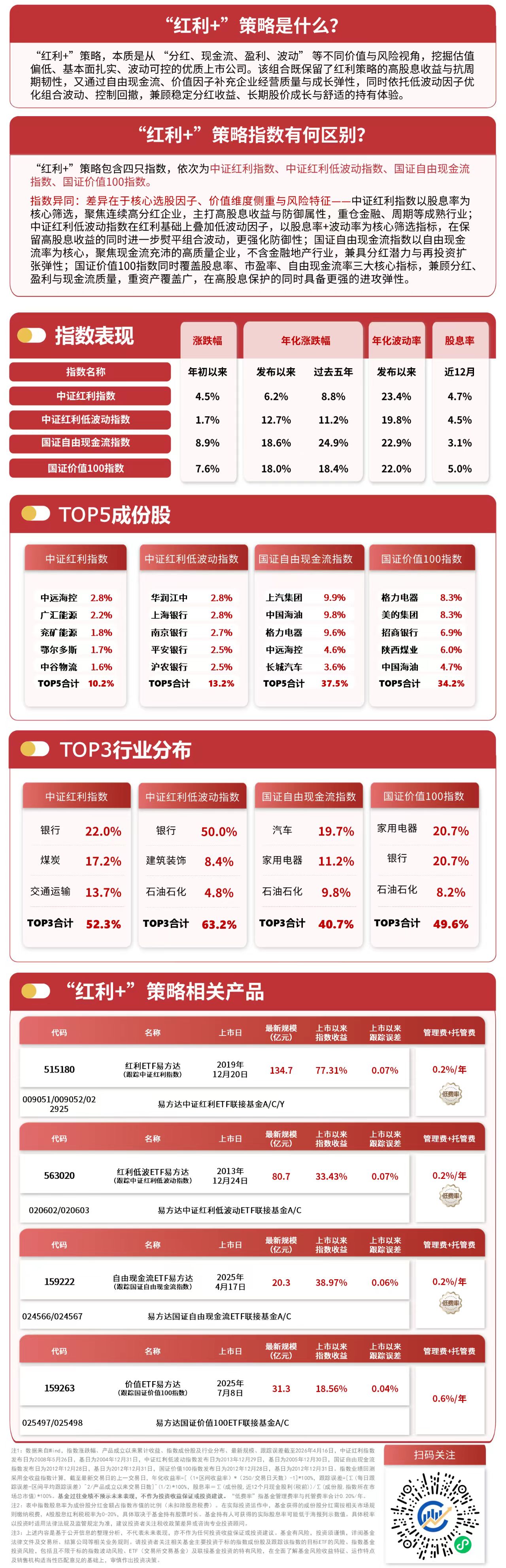 截至收盘,中证红利低波动指数下跌0.2%,国证自由现金流指数、国证价值100指数、中证红利指数均下跌0.7%,价值ETF易方达(159263,联接基金A/C:025497/025498)全天净申购达1400万份。Wind数据显示,该ETF此前已连续12个交易日获资金净流入,合计7.4亿元。