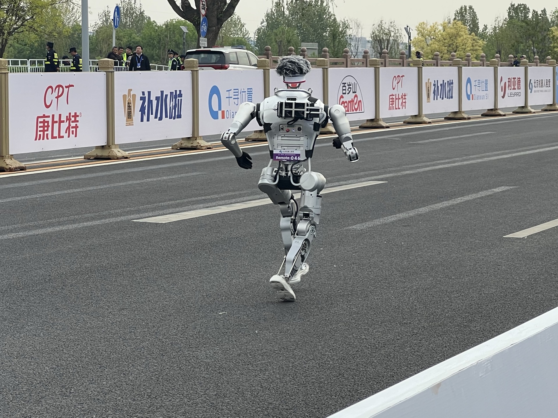 参赛机器人正在跑步 图片来源:每经记者 李少婷 摄