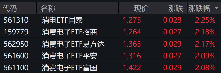 受盘面影响,消费电子相关ETF涨超2%。