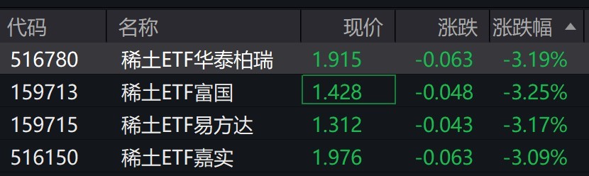 稀土概念股走低,盛和资源跌超6%,中国稀土跌超5%,北方稀土、厦门钨业跌超4%。