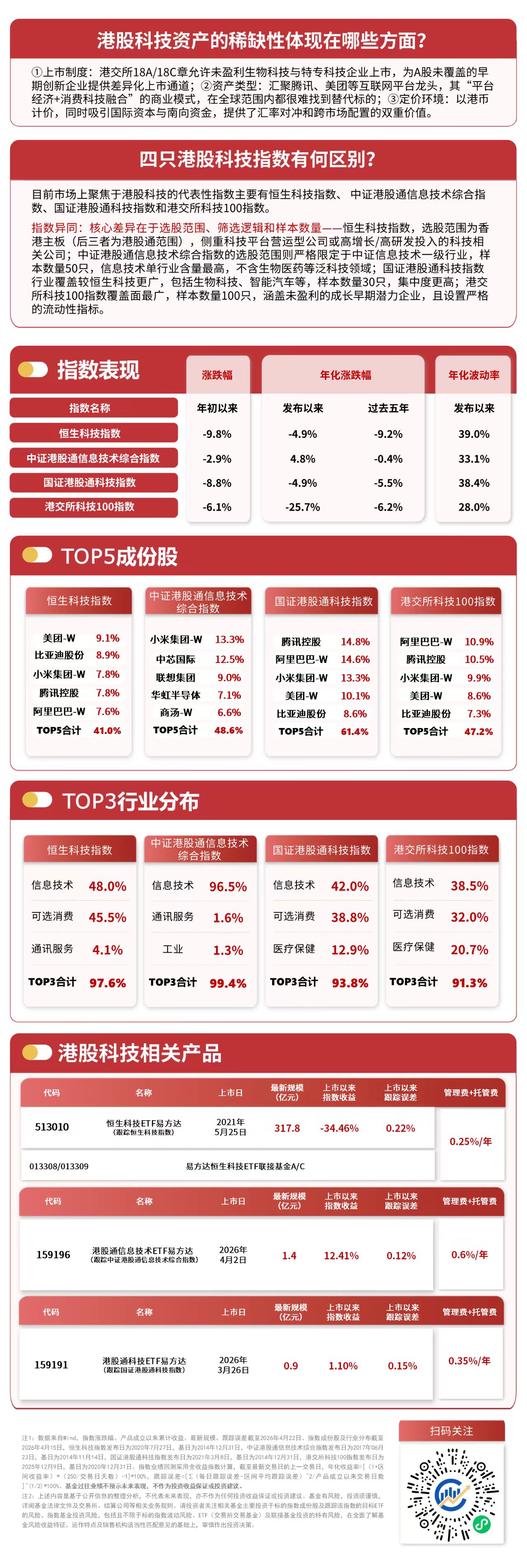 4月23日早盘,港股科技板块震荡调整。截至午间收盘,中证港股通信息技术综合指数下跌2.1%,恒生科技指数下跌2.3%,国证港股通科技指数下跌2.6%,港交所科技100指数下跌2.5%,相关ETF中,恒生科技ETF易方达(513010,联接基金A/C:013308/013309)昨日“吸金”超2亿元。