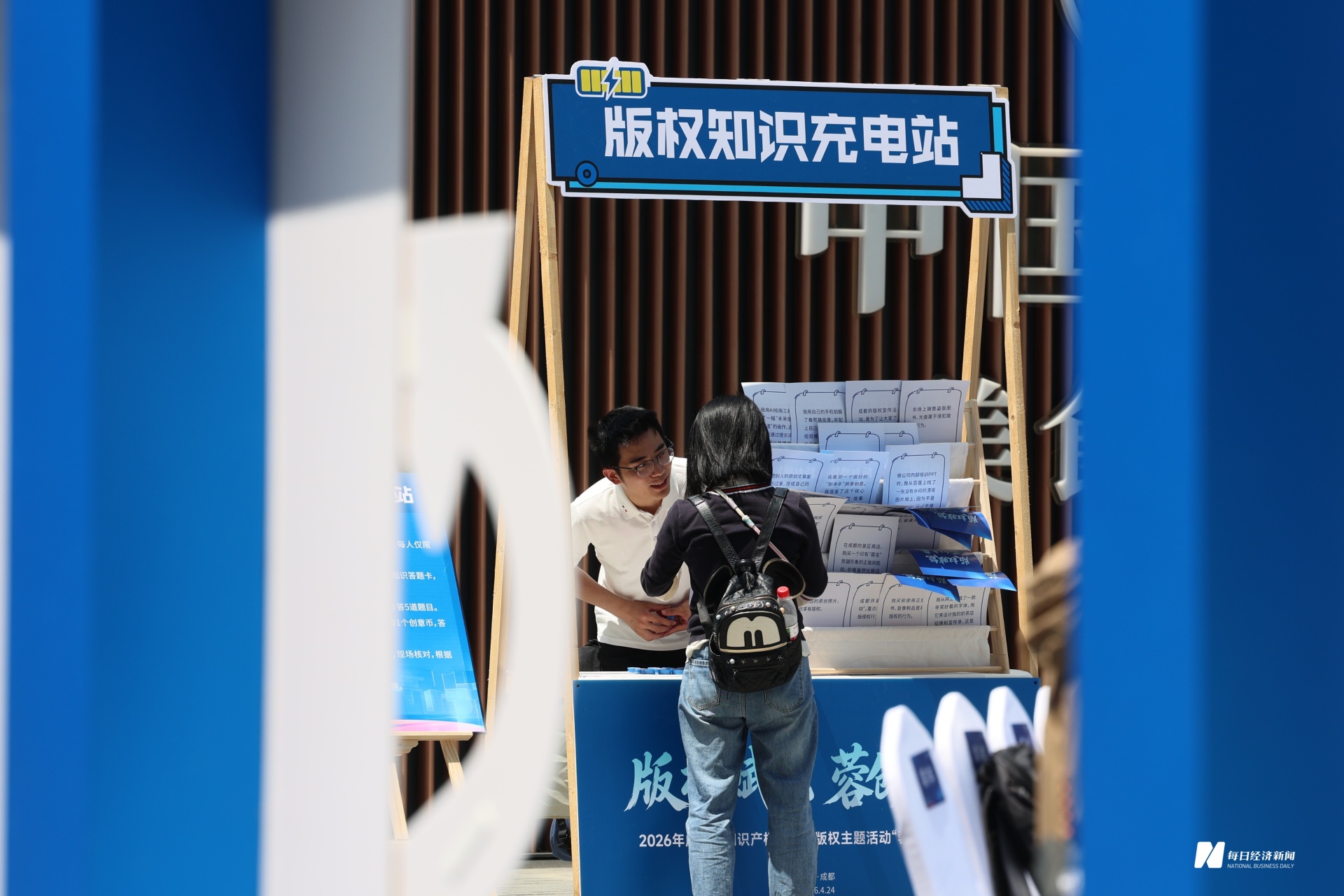 4月24日下午,成都华商金融中心北广场人气高涨,一场别开生面的版权主题全民互动活动正在上演。市民在“创作者碰头处”挥笔勾勒原创角色,在“版权知识充电站”踊跃答题闯关,版权文创展览区内,《遮天》、崇州竹编、音乐剧《熊猫》等展品吸引众多观众驻足打卡。伴随着这场沉浸式互动,2026年成都市知识产权宣传周版权主题活动正式拉开帷幕。