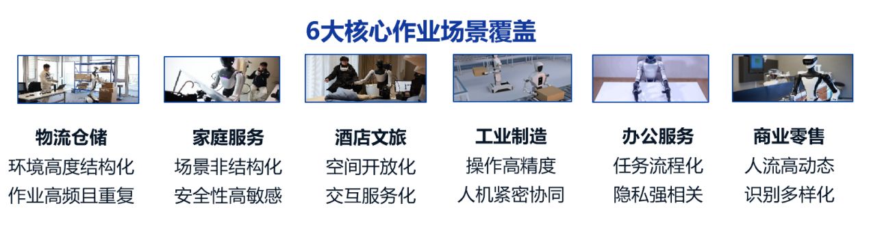 公司已成功建成虚实融合闭环的长三角(德清)具身智能数据采集训练场,构建起覆盖室内 3000㎡、室外封闭场地 505 亩、全域开放场景 937 平方公里的三级训练体系。依托该训练场,已深度链接数十家真实终端场景,形成高价值、规模化的场景生态矩阵,全面覆盖物流仓储、家庭服务、酒店文旅、工业制造、办公服务、商业零售6大核心场景。
