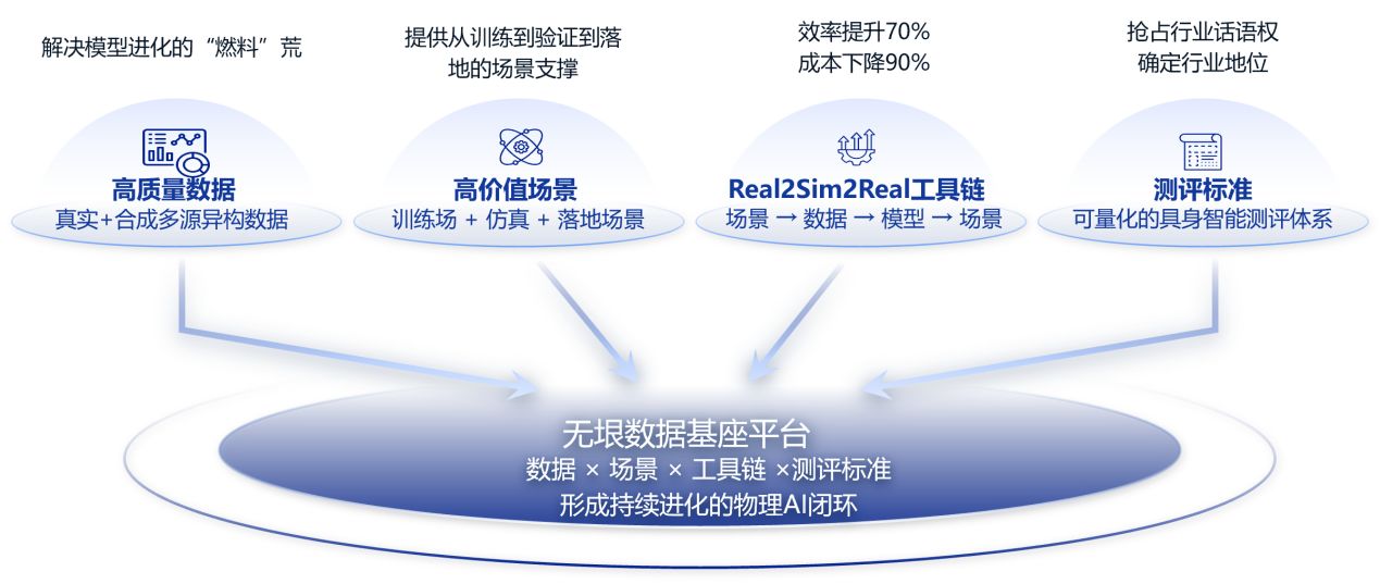 公司全栈自研“无垠”物理AI数据基座平台,精准破解行业“数据、场景、工具链、测评标准”四大痛点,构建起行业领先的技术体系: