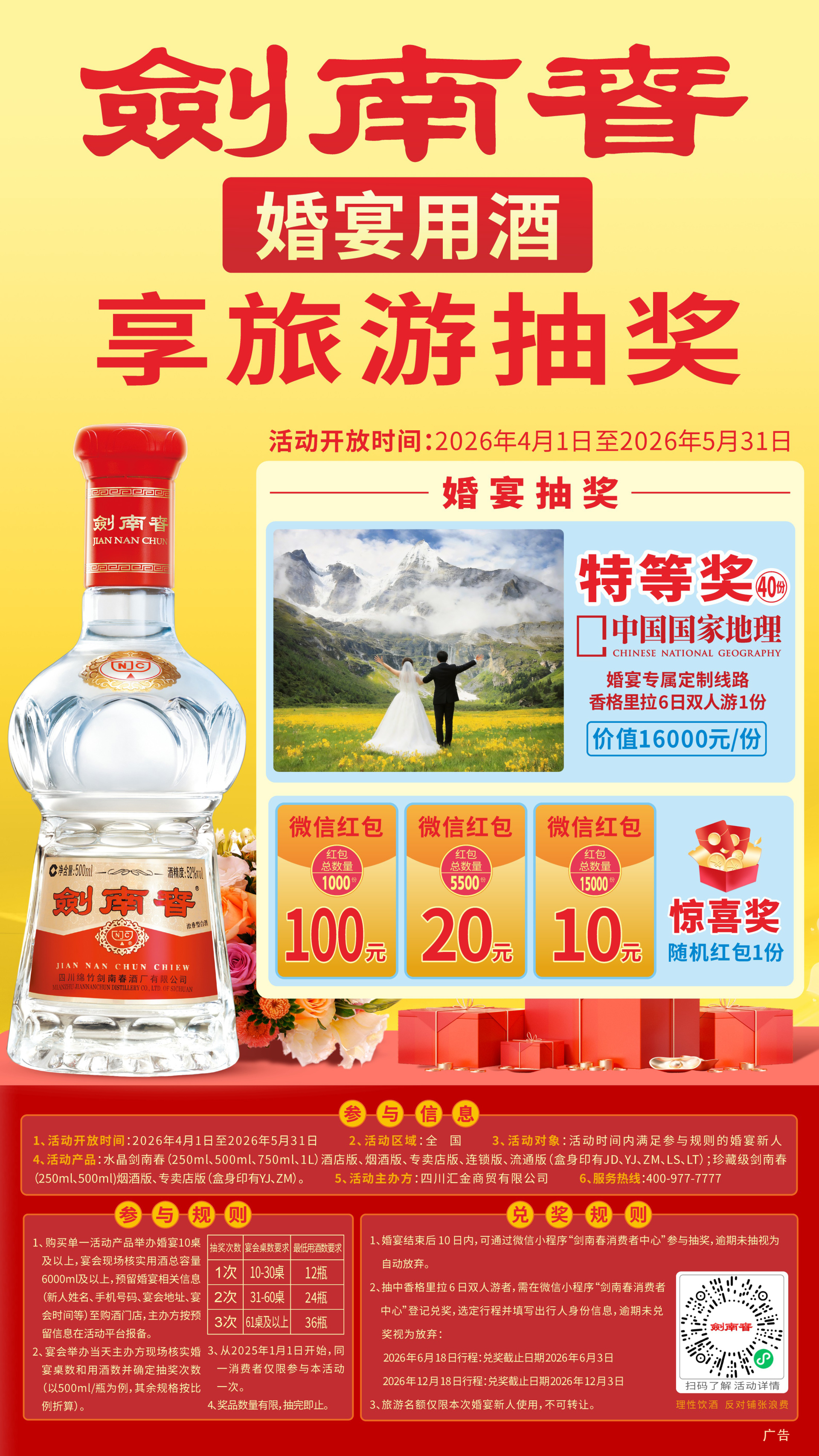 这并非一次简单的买赠。剑南春相关负责人表示,活动选择与《中国国家地理》联手,旨在将“千年酒香”与“雪域秘境”的场景融合,迎合当下年轻群体对婚礼仪式感、个性化及高品质体验的消费心理。