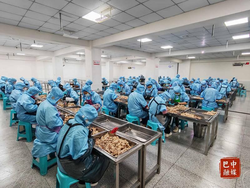 “政府牵线、社区赋能,租金低、落地快、用工足,发展十分顺畅。”工坊负责人张良强说,企业高峰时日加工鸡爪可达五六吨,实现低成本运营、高效率生产。
