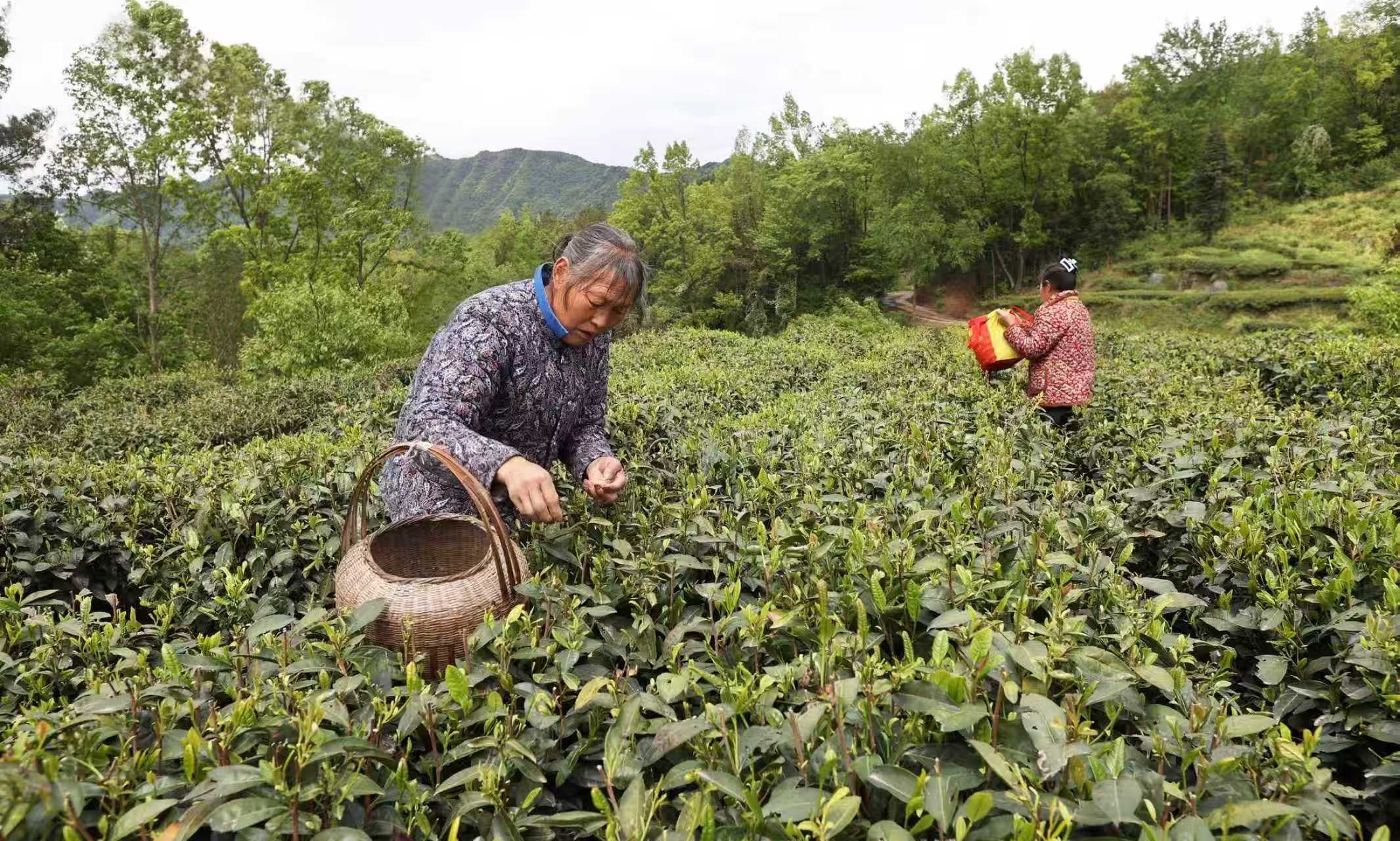 虎垭村村民采摘春茶