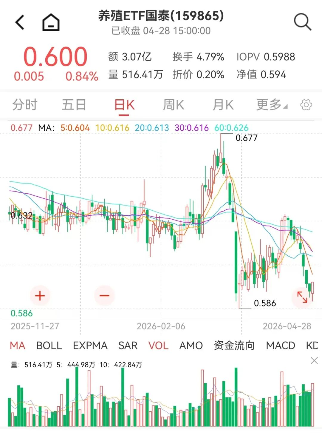 4月28日午后养殖ETF(159865)逆势飘红,上涨0.84%。