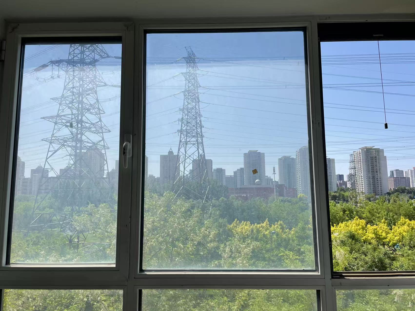 由于建成后空置多年,现场房屋内部、楼梯间已经积了灰,但外观和整体情况保持良好。不过,部分房源正对高压电塔,视野很受影响。